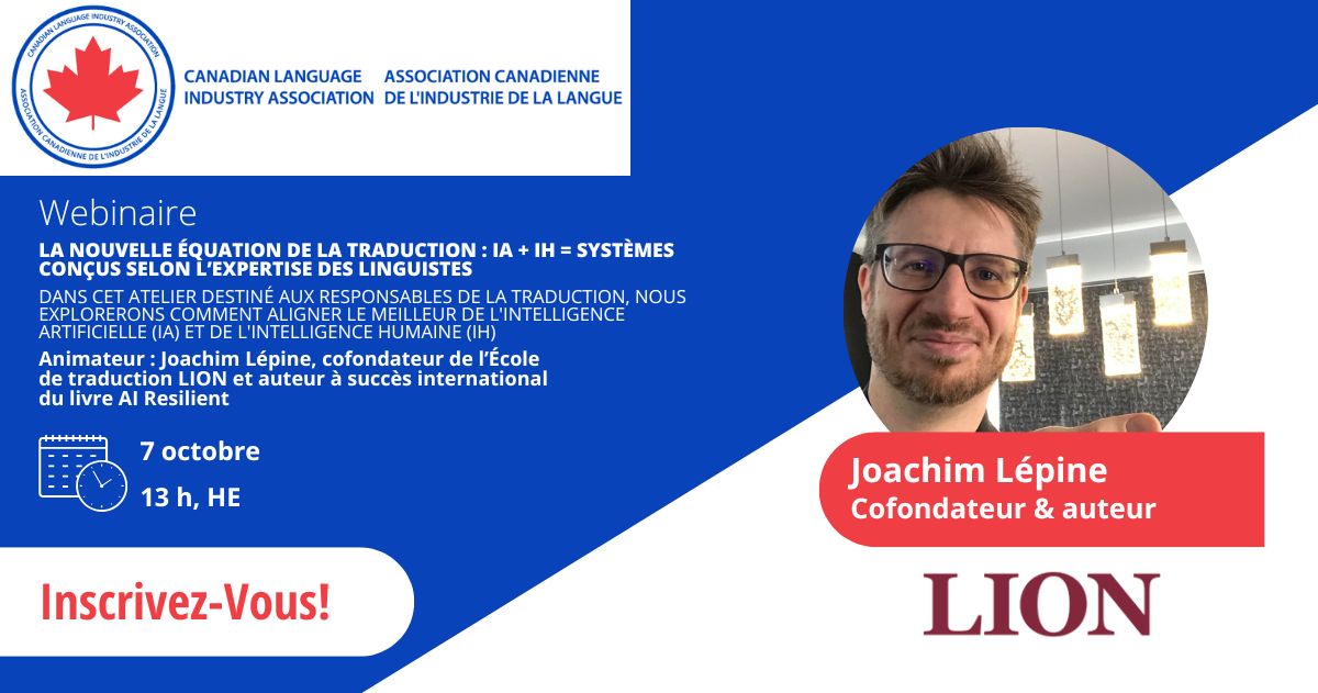 Animateur : Joachim Lépine, cofondateur de l’École de traduction LION et auteur à succès international du livre AI Resilient